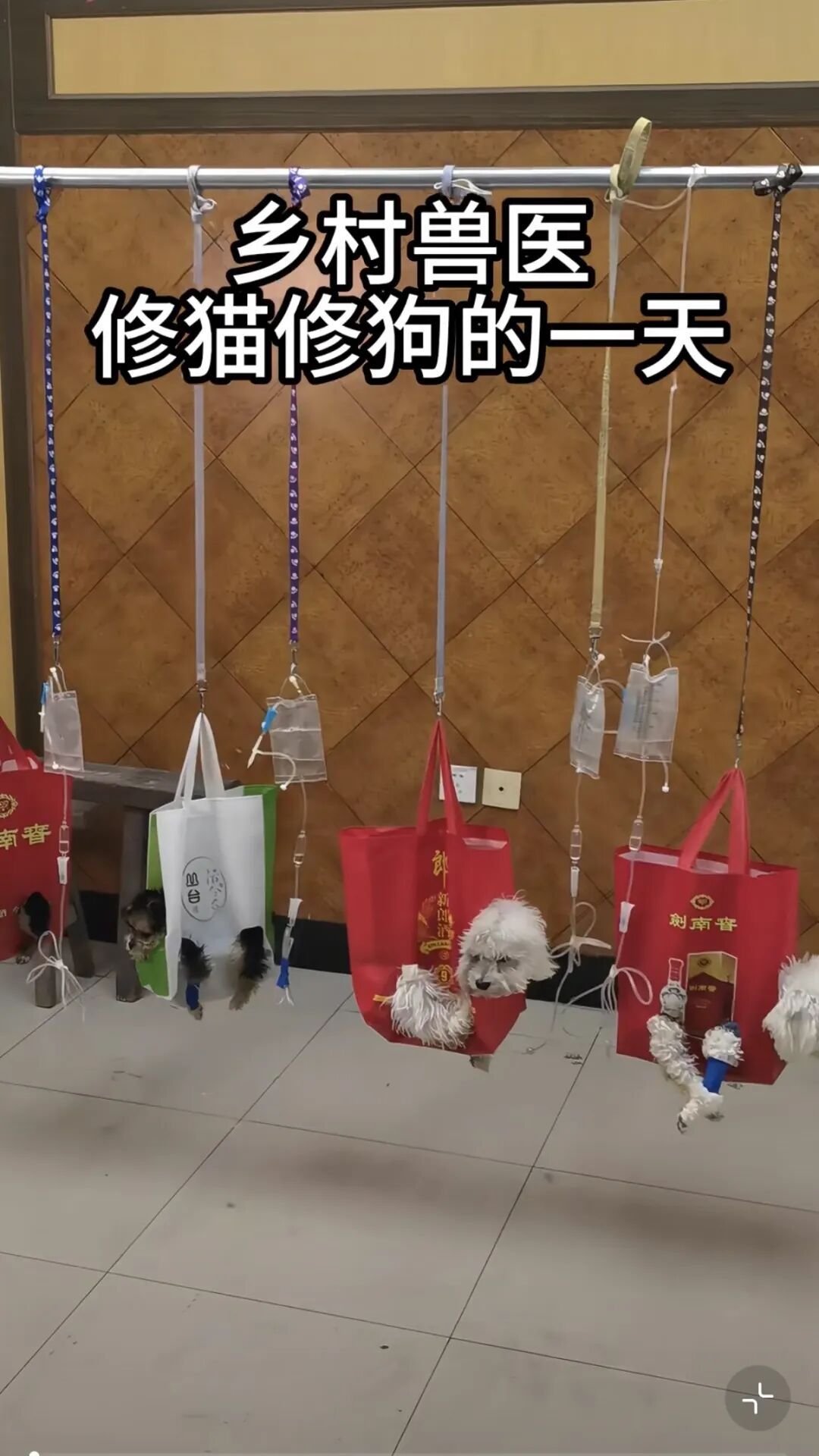 宠物家长来了,把自家“毛孩子”往桌子上一放便开始看病。没有干净明亮的手术室,也没有分区明确的病房,所谓“住院部”,是一排长板凳,甚至是几个挂着的结实的塑料袋,只要能装得下猫狗,就算一个床位。